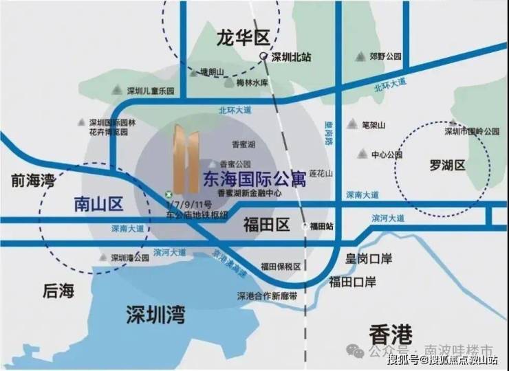 【多维交通 地铁上盖物业】城市主干道深南大道之上。1、7、9、11号线四条地铁交汇到站即到家,广深港高铁客运专线实现14分钟深港高铁生活,毗邻京港澳高速入口,20分钟可达深圳可达深圳机场。