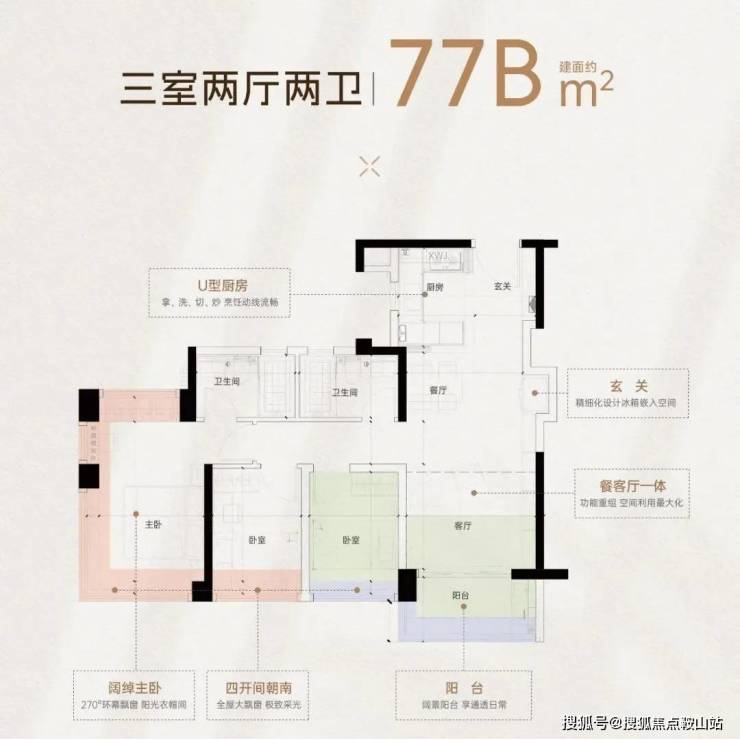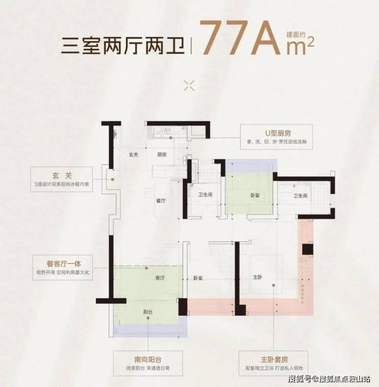 万科檐屿城项目由三地块组成,容积率均为3.0,一共打造15栋住宅,两梯五户设计,总货量1549户,主打77-135㎡单位,首开1、9栋,33层高,2T5,总套数约320套,以刚需面积为主,约77平有2条梯腿,64套;约88平有6条梯腿,192套;约98平、105平,各1条梯腿,分别32套,户型图如下: