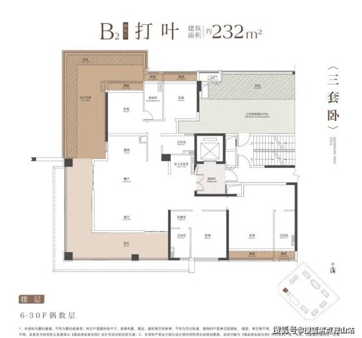 建面约 232㎡户型:得房率超 125%,实际使用面积堪比传统 340㎡住宅,空间性价比远超常规项目。采用 L 型设计,大概有 70㎡空中露台,拥有 270° 环幕视野,采光与视野双重升级。折算单价约 2.16 - 2.63 万元 /㎡,总价在 498 - 608 万之间。