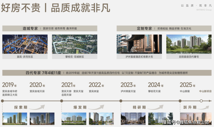 鑫洋集团,以“品质成就非凡”为品牌理念,以地产开发为核心,聚焦工程建设、生活服务、酒店管理、商业运营、服装品牌管理等业务板块。自2019年起 连续7年开发11座高品质四代住宅 以“只定制·不复制"的产品理念 为城市塔尖定制理想居所。