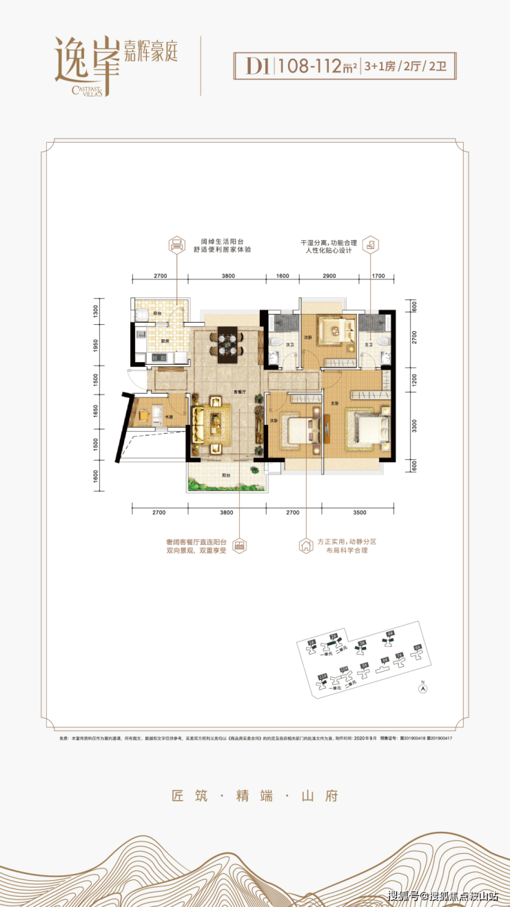 ②建面约108㎡-112㎡/122㎡3+1房2厅2卫户型