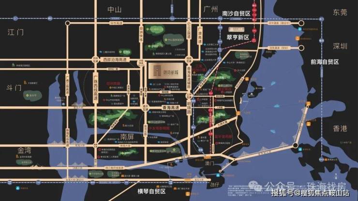 项目位于珠海中山双城交汇处,享中珠双城配套。政府重点规划南部新城核心高铁中山南站(规划接驳广州地铁18号线、广中珠澳高铁、南深高铁)距项目5分钟路程,带动片区近百万人流出行。