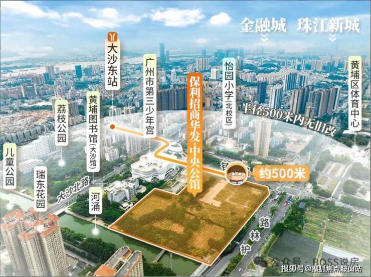 项目位于黄埔图书馆的北侧,距离5号线和7号线交汇站(大沙东站)约500米距离,周边生活配套也十分齐全,步行范围内就有黄埔体育中心、怡园小学、86中、黄埔儿童公园,以及前面提到的图书馆、少年宫。