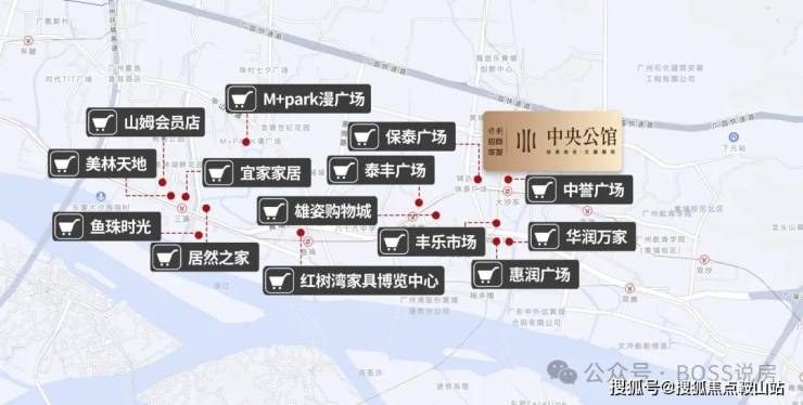 大型商场:周边 3km 范围内有惠润广场、黄埔潮楼名店城、星荟城购物广场、美林 M・LIVE 天地等。