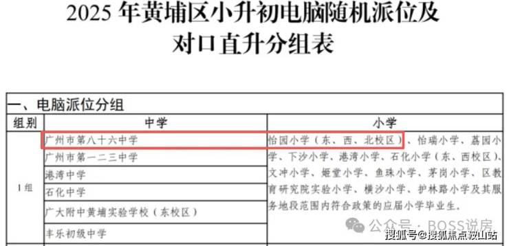 📘初中:根据2025年黄埔区派位情况,怡园小学北小区是第一组,对口的学校有86中,123中等学校,