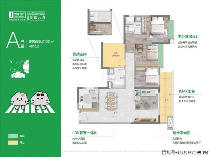 餐客厅约7m大面宽,约6m宽幕阳台,主卧套房设计
