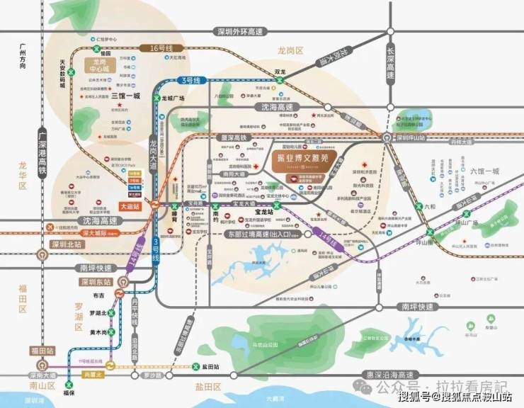 16号线坪山站 :坪山站升级“坪山综合交通枢纽”,16号线、高铁、深大城际(宝安机场——坪山,在建)三轨交汇;