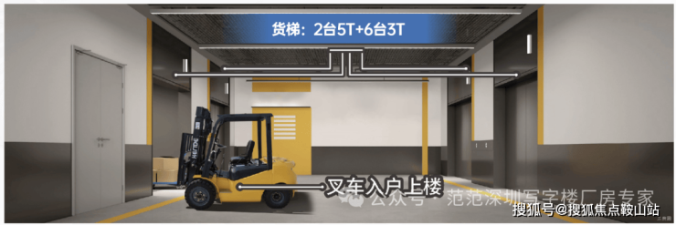 【硬核硬件】行业领先的16台电梯配置,让高效运输更容易每栋配置16台电梯,8台客梯+8台货梯,客货分流,生产办公互不打扰,高效有序顶配货物运输系统,罕见2*5T+6*3T的高荷载货梯,一流的运载力,叉车入户上楼,垂直运输能力翻倍