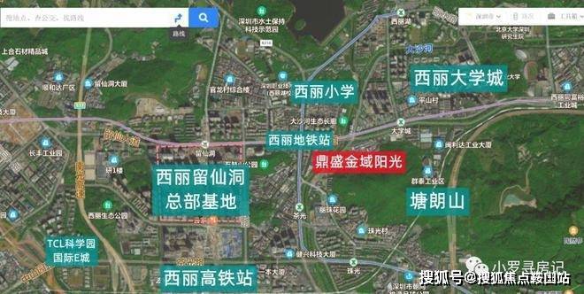 项目西侧为西丽留仙洞总部基地,东北侧为大学城,东侧为塘朗山,西南侧是西丽高铁站。