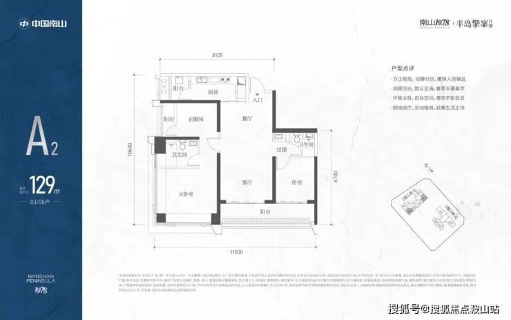 A2有两条腿,分别1-1栋03/06,主朝向是东南向,双龙抱珠格局。这个户型是超阔大阳台,朝向优于A1,但公卫是个暗卫。