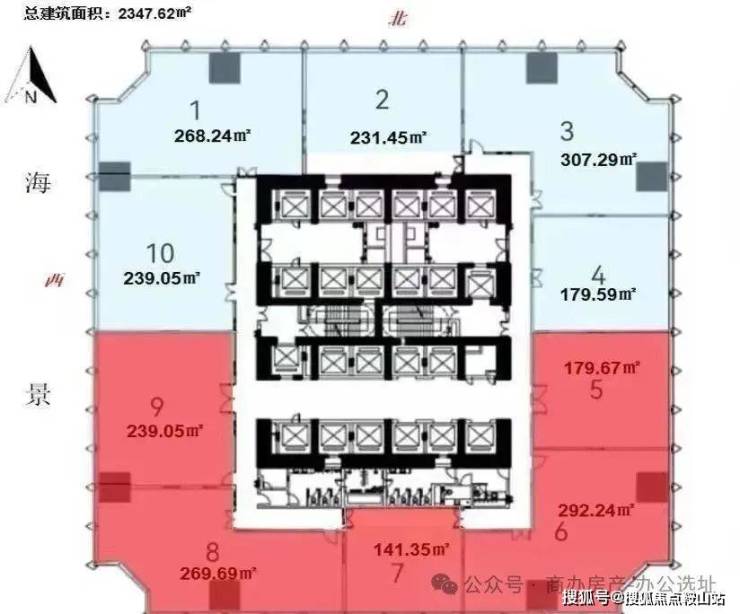 建筑面积:约11万㎡(5-54层办公)