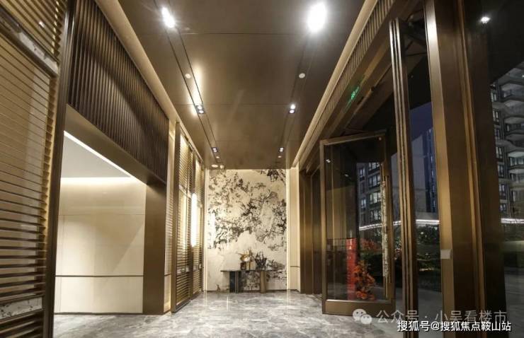 在业主的归家动线上,楼栋的入口,气派的入户大门、大面艺术背景墙面点缀的内部空间,都为业主营造出精奢的观感。
