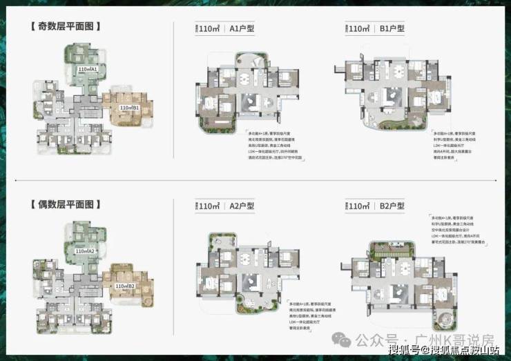 82方奇数层户型,3房2卫,竖厅格局,客厅可以和次卧打通成为一个超级大方厅。四开间朝南,南向面宽去到12.4米。空中花园面积达20㎡。