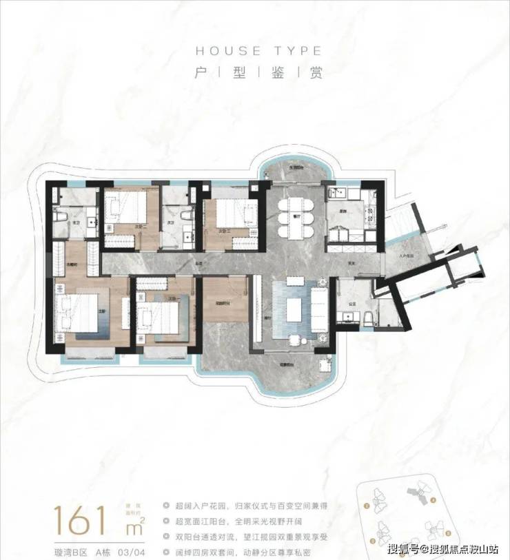 特点:一线江景,南向大面宽,改善与豪宅兼具。