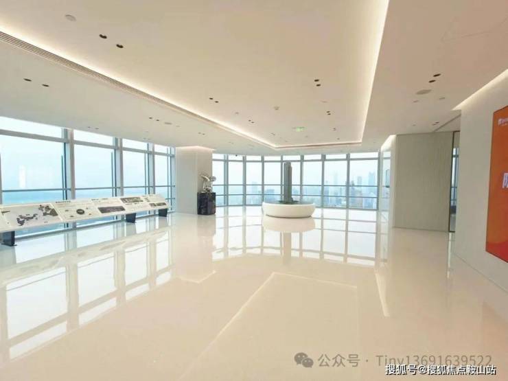 约11米层高,融合“光辉未来”设计理念,以充满能量的线性符号和天花模块群设计,打造核心大堂气派形象。
