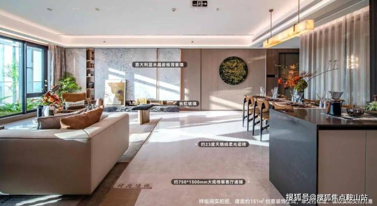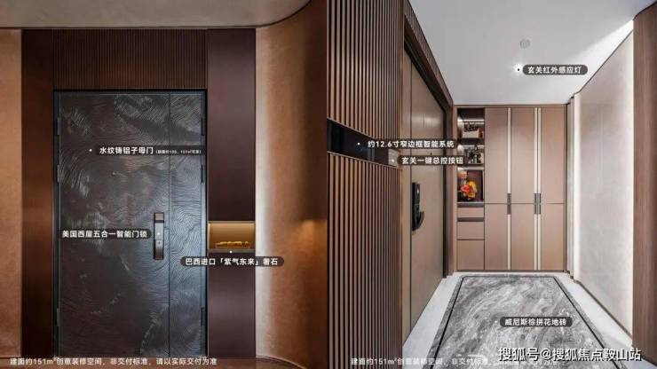 品牌配置:全屋配备博世三件套(洗碗机 + 烤箱 + 燃气灶)、东芝中央空调、德国高仪卫浴,151㎡户型更采用巴西奢石玄关、意大利蓝水晶岩板背景墙。