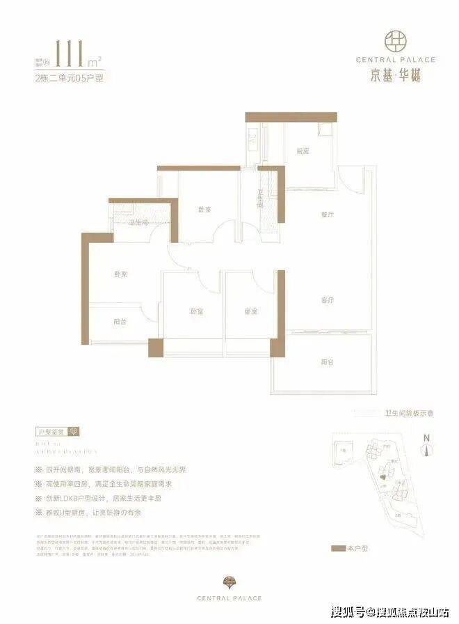 项目户型包括95㎡的3房2厅2卫、99㎡的3房2厅2卫、111㎡的3房2厅2卫、120㎡的3房2厅2卫、143㎡的4房2厅2卫及153㎡的5房2厅2卫,143㎡四房为横厅设计。