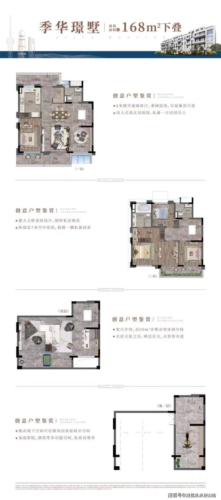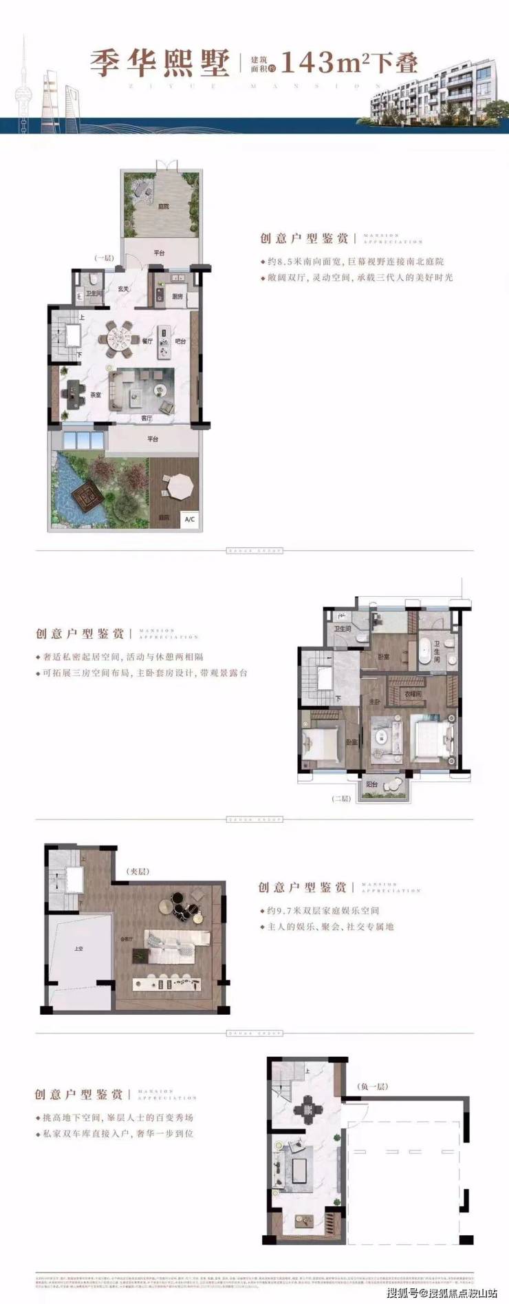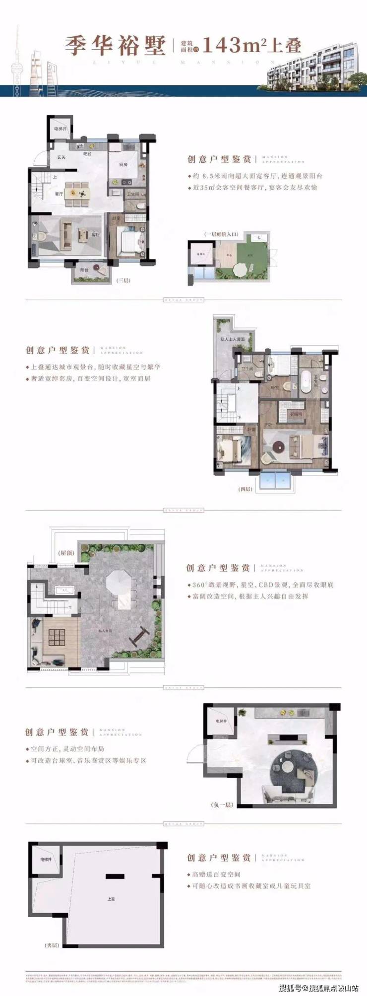 叠墅总高约16米,户型分上下两叠,建面143㎡及168㎡,毛坯交付,空间实用率非常高,赠送多,片区没有对标,户型图如下: