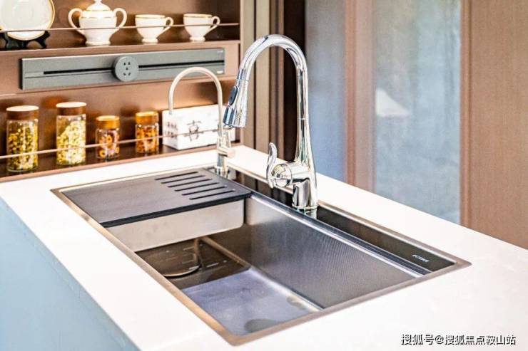 净水系统针对全屋自来水做了多重过滤,整个厨房有直饮水,淋浴用水水质也有大幅升级。
