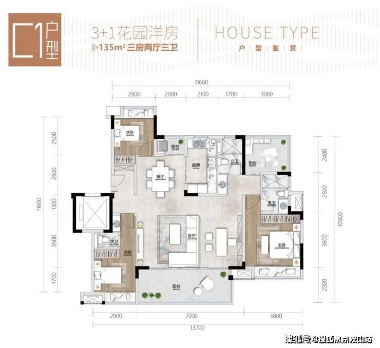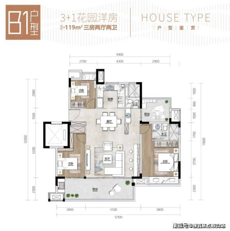 🔥必买价值八【优享户型】:约108㎡3+1纯板房,明厨明卫双阳台,全家均享独立度假空间。