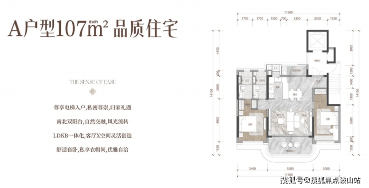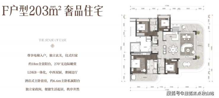 项目共有6种户型,涵盖建面约107㎡—203㎡的面积段,空间感阔绰,具备以下几大特点: