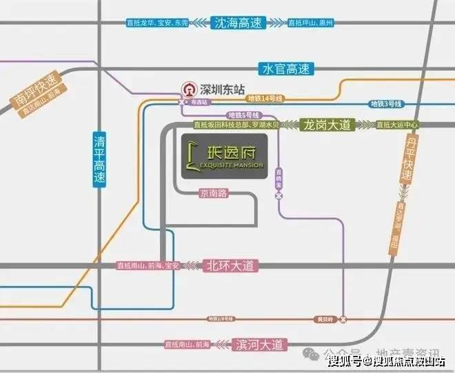 地理位置与交通:珑逸府地理位置优越,紧连罗湖和福田,是深圳东进西联的重要门户。项目距离深圳东站以及布吉地铁站D出口仅200米,周边交通网络发达。珑逸府售楼处电话☎:400-150-5057地铁3号线、5号线、14号线在此交汇,未来还将接入17号线和25号线,从布吉到福田CBD仅需3站地铁路程。此外,项目周边还有龙岗大道、机荷高速、水官高速、清平高速、南坪快速等多条高速公路和交通干道,确保了交通的便捷性。