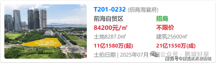 2025年7月14日,招商蛇口以8.42万元/㎡的惊人楼面价,拿下前海桂湾地块,刷新深圳地价纪录。