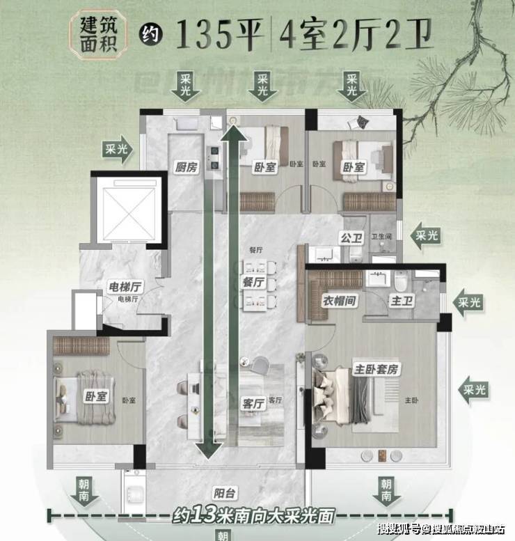 125㎡四房:总价约275万元,月供约1.2万元,采用横厅设计+双阳台