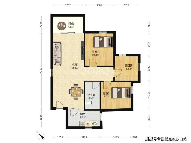 半山香榭A户型:86㎡(户型分布7#8#9#10#)