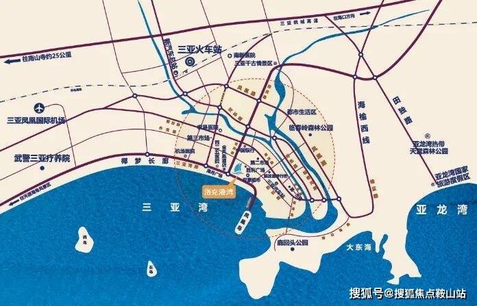👑项目位于三亚湾与迎宾路交界处,海月广场对面,距离海岸线约100米。