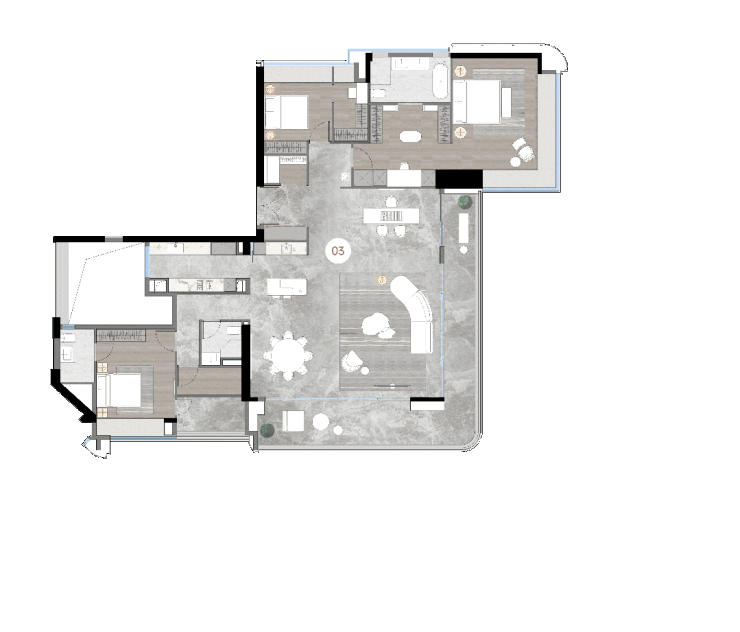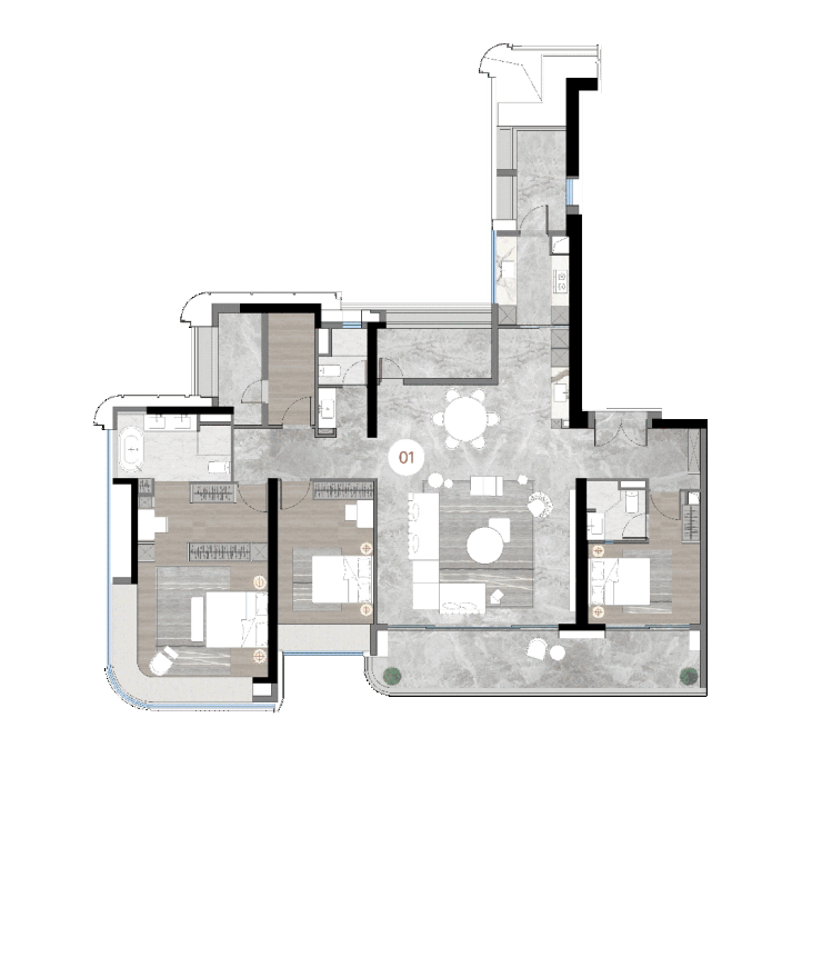四房三卫精心配置,契合家庭在不同阶段的居住需求。拥有270°开阔观江视野主卧,望江而居,拥江入眠,尽享奢华隐秘生活品质;双套房设计为家庭成员提供了独立而私密的休息空间,满足多样化的生活方式;