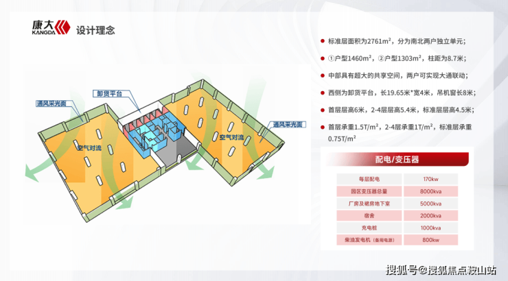 标准层高4.5m,承重0.75T/㎡