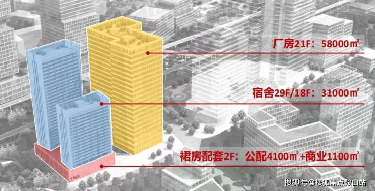 新桥东先进制造产业园:规划面积2.3平⽅公⾥,总建筑面积超500万m²,其中厂房约183万㎡,研发空间约63万㎡,居住空间约138万㎡,其他配套空间约34万㎡。