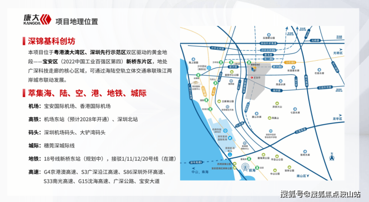 项目位置:本项目位于粤港澳大湾区、深圳先行示范区双区驱动的黄金地段——宝安区(2022中国工业百强区第四)新桥街道东片区,地处广深科技走廊的核心区域,可通过海陆空轨立体交通串联珠江两岸城市联动发展。