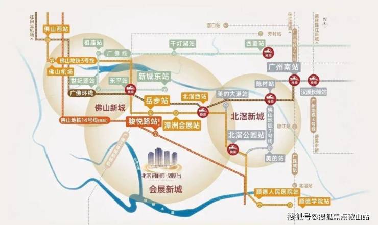 佛山14号线-骏悦路站(规划) (来源:佛山市顺德区北镇土地发展中心):直项目约500m,建成后从项目出发步行轻松可及,可连通佛山3大重点板块禅城、佛山新城、北滘新城;