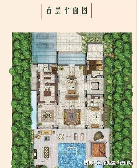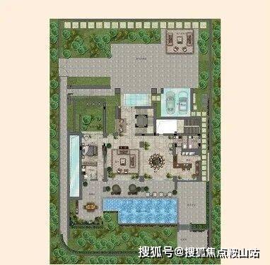 私家超大泳池,草坪活动区域,阶梯式园林分布合理规划园区