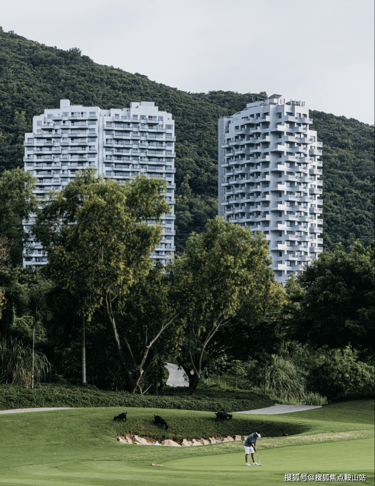 真正能够直面高尔夫果岭景观的在售产品是阿那亚的叠墅。以山谷为经,用山坡作纬,纵横勾勒,每一栋都根据地势高差,择取最优质的景观面。