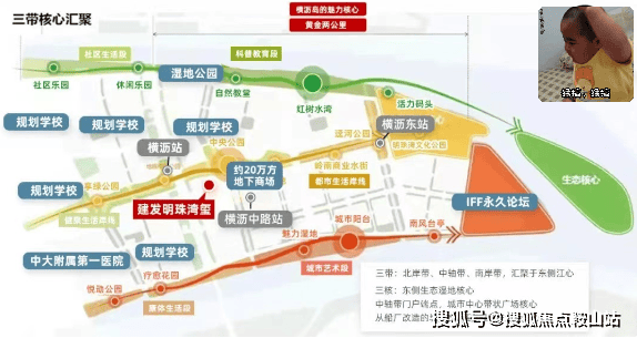 项目位于:中国首个国际金融岛中轴芯,地铁18号线横沥站旁(约250米,规划出口);