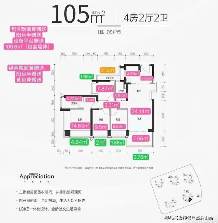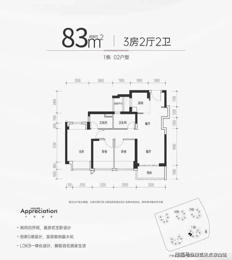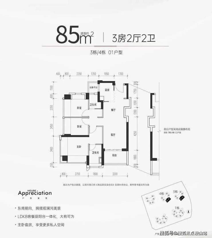 【户型面积】约75-85㎡3房2卫,约94-105㎡4房2卫
