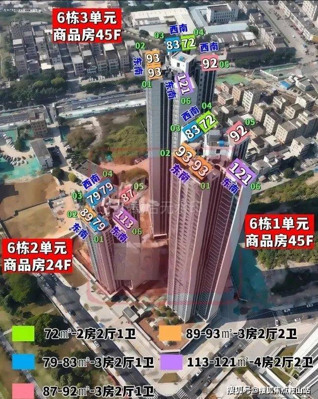 西地块有3栋住宅,6栋1/3单元住宅45F,6栋2单元住宅24F。