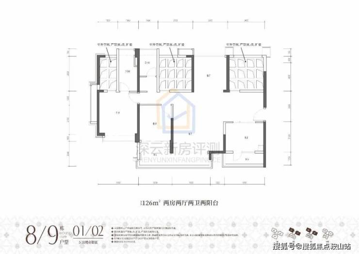 ①高阔奢享:建面约86-176㎡墅境宽宅,改善型三房四房,全南向户型天然舒适;两梯三户低梯户比,多阳台露台设计,悦享阔绰居住空间;方正户型结构搭载更多半开放设计,高阔空间实用率与灵活性大幅提升。
