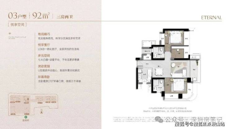 项目折后价格(92.2%折),总价883-2068万作为福田核心区的新房,这个价格门槛在区域内有一定竞争力,特别是92㎡起的产品,给了刚需客户入住福田CBD的机会。