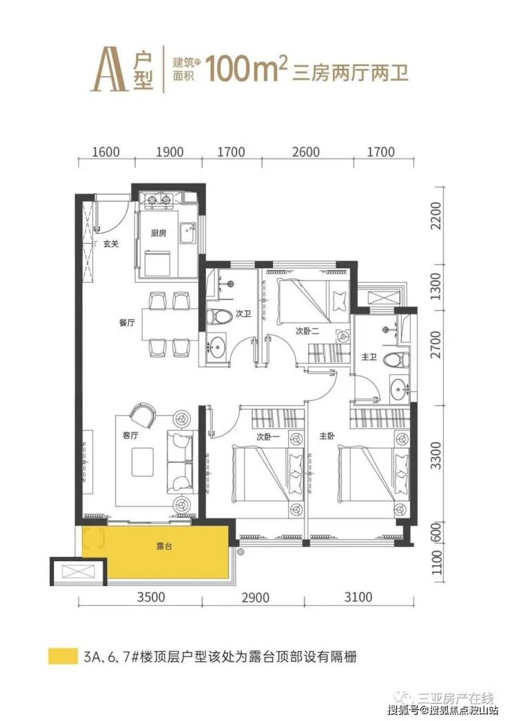 在售户型:建筑面积约100㎡三房两厅两卫、约120㎡四房两厅两卫