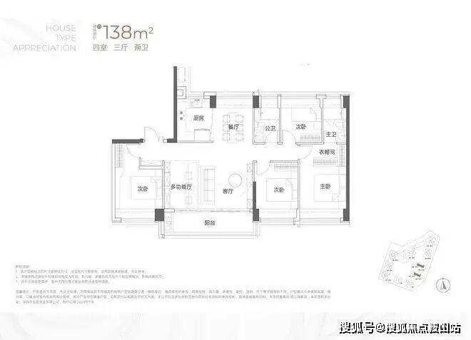 建面约138㎡4房2卫