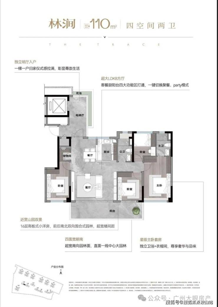 独梯入户、四面宽朝南、南北对流超大方厅...这些大平层级别配置,通通能够享有。