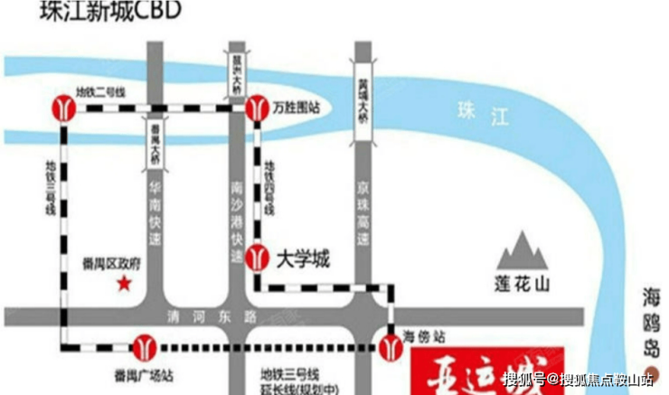 交通方面:目前可乘坐地铁4号线直达琶洲和天河,3号线东延工程进度已到96%,明年即可通车并直达珠江新城。未来还有4号线复线、8号线南延段、广中珠澳高铁等规划中的交通线路。此外,亚运大道、新化快速、华南快速、南沙港快速、南大干线等交通路网也便于业主自驾出行。若不想开车或乘地铁,还可选择楼巴前往海珠和天河。
