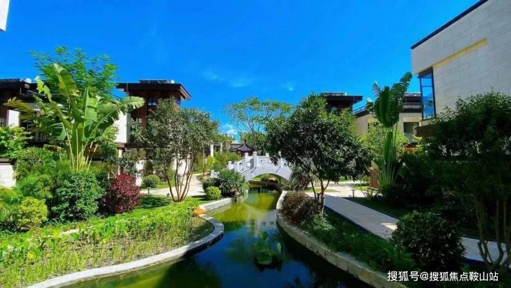 中央水系景观以逐浪庭,渠水庭,银锭桥,浮云庭,月亮门,结合三亚丰富的热带植被花卉进行绿化铺陈,打造中正大气、绿意盎然、小桥流水、生机勃勃动静结合的项目建筑景观全系风貌。