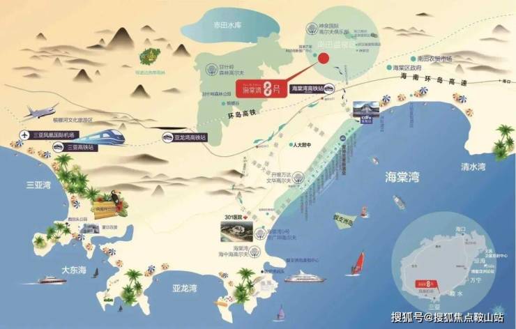 北纬18°,东方夏威夷,国家海岸海棠湾,坐享自贸岛红利,位于藤桥出口,交通四通八达,可无缝接驳东线高速。