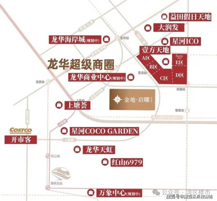 金地·启曜位于龙华超级商圈中心的中心,打造超200万㎡、超500亿产值的全国级引领商圈和多样化未来消费体验中心。