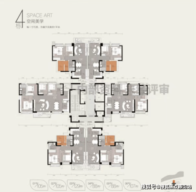 天际4栋:提供88平方米、105平方米和129平方米的户型,单价2.7-3万元/平方米。